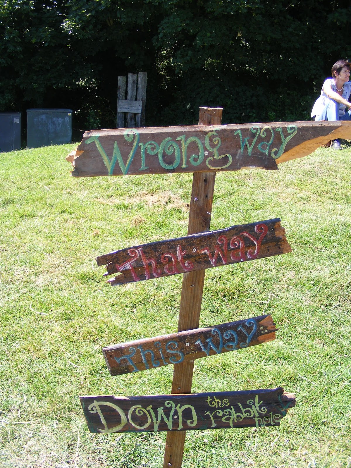 The production by Jimjam Arts was spread through out the park and involved searching for clues as to who had stolen the Jam Tarts, in order to save Alice ( who was at the time tied to a post of the ampitheatre ) from having her head chopped off by the Queen of Hearts. Various characters played there part well........